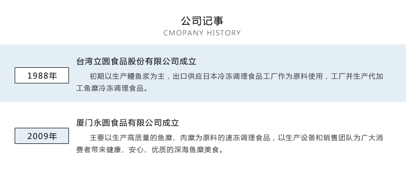 公司于2009年11月取得福建省質量技術監督局QS生產許可,并于2010年8月底通過ISO2200:2005及HACCP等國際質量認證。于2011年2月取得CIQ認證